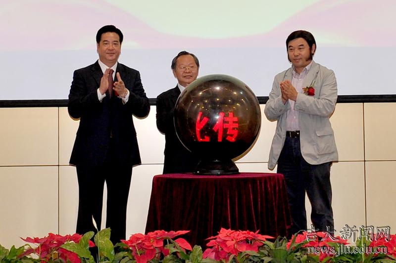 张群、陈德文、李元元共同启动“吉林大学电视台数字化传输”水晶球