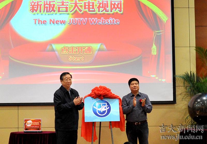 宋伟、刘晓民共同为电视台新台标启用揭牌并开通吉大电视新网站