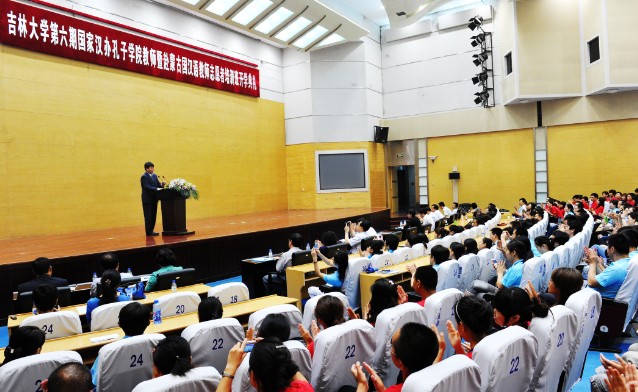吉林大学校长展涛在致辞中,对来自祖国各地的学员们表示欢迎,对学员们能够立志投身于汉语推广的伟大事业中表示由衷敬意。展涛表示,作为传播中华文明与中国文化的使者,孔子学院的教师以及志愿者们在汉语国际推广的道路中发挥重要的作用。他希望学员们能够在吉林大学进一步学习中华文化、了解所在国文化,真正做一名汉语推广的使者,将中国悠久的文化播撒到世界各地。