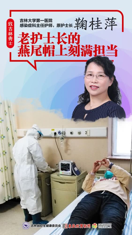 自1月19日长春市出现第一例疑似冠状病毒感染病例开始,感染症科的护士们就取消了休假,随时待命。1月26日,感染症科护士长朱媛等三名护士及一名医生驰援武汉,55岁的老护士长鞠桂萍临危受命,披挂上阵,战斗在医院最危险、最辛苦的发热门诊,全力开展抗疫工作。