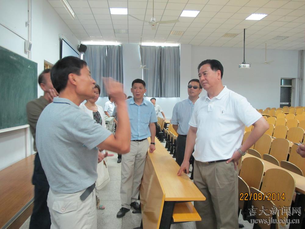在中心校区外语楼,李元元详细询问采暖、防雨等相关工程细节,并提出了“对楼宇的维修保养要做到常态化、科学化”的要求,同时希望外国语学院和公共外语教育学院加强学科联系与合作,争取在学科建设方面有新突破。在逸夫教学楼,李元元一行来到阶梯教室,对桌椅更换、吊扇安装等工作现场办公,他特别要求“一切工作要以学生满意不满意为考量标准”。