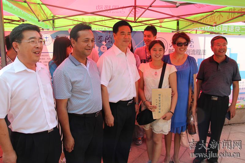 来自新疆19岁的热依拉是吉林大学法学院的大一新生。“吉大法学院每年分数很高的,祝贺你考到吉林大学!”李元元说道。当得知热依拉是哈萨克族时,李元元还特意和她提起了吉大的清真食堂。“这也要感谢你的父母”,李元元说,“肯把你送到离家这么远的吉大来求学,这本身就是对吉大的肯定和信任。”