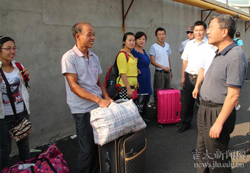 在南苑二公寓,一位来自湖南的新生家长得知是校领导来看望他们时激动地说:“坐了29个小时的火车,虽然很辛苦,但看到校领导来看望我们,感到很亲切,很温暖。早晨7:06分下火车,一出站台就有学生迎接,非常顺利地到达了学校,迎新工作做得很好,我们感到很满意,把孩子送到吉林大学我们非常放心。希望吉大把孩子们培养成身体棒棒、心态阳光、本领强强的全面发展的栋梁之才”。