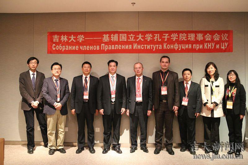 大会期间,吉林大学与乌克兰基辅大学共同举办了基辅大学孔子学院理事会会议,会议审议通过了理事会章程、理事会名单和未来五年工作规划,基辅大学孔子学院外方院长向会议做了工作报告。校长李元元、副校长陈岗、国际处长兼公共外交学院院长刘德斌、乌克兰基辅大学校长特别代表弗拉基米尔•茨维赫、外方院长功察连科•亚历山大和中方院长孙克文等出席了理事会会议。理事会召开之前,李元元、陈岗分别会见了吉林大学在海外建设的孔子学院参会代表,就各孔子学院的未来建设工作进行了讨论;并与吉林大学两名“孔子新汉学计划”博士奖学金留学生进行了交流,鼓励他们学成之后为推动世界理解中国做出贡献。