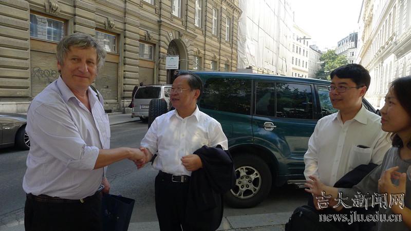 在奥地利访问期间,陈德文与欧亚太平洋大学联盟副主席、维也纳兽医大学副校长迪特劳斯教授(Wolf-Dieter Rausch)会面并共进午餐。双方回顾了吉林大学与欧亚太平洋大学联盟的合作基础,表示将积极推动和共同促进未来双方开展更加实质性的合作与交流。此外,双方还就学校农学部与维也纳兽医大学间建立和开展学术交流交换了意见并达成共识。