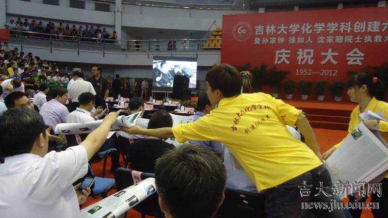 据介绍,庆典开始两周前,化学学院从2009、2010、2011级报名的同学中挑选出近200名志愿者,投身此次庆典相关活动中。他们满长春地跑,给世界各地的来宾和校友发邀请函,并确认回执;同时负责嘉宾接待、征集会场条幅格式内容,以及志愿者服装和报纸制作等多项工作。