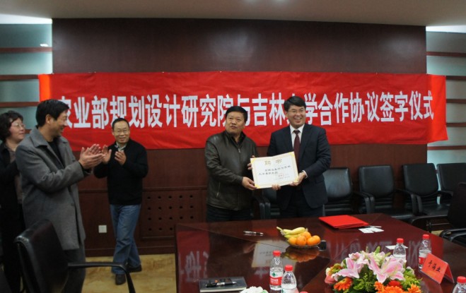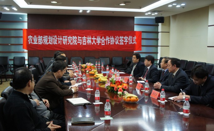 签字仪式由农业部规划设计研究院党委书记李伟方主持。规划院与吉林大学既有合作的基础,又有很好的感情基础,双方合作是共同顺应时代潮流、满足社会发展的需要,展涛、赵继分别介绍了吉林大学的学科优势,表达了与农业部规划设计研究院合作的真诚意愿。校长展涛与农业部规划设计研究院院长朱明在合作协议书上签字。