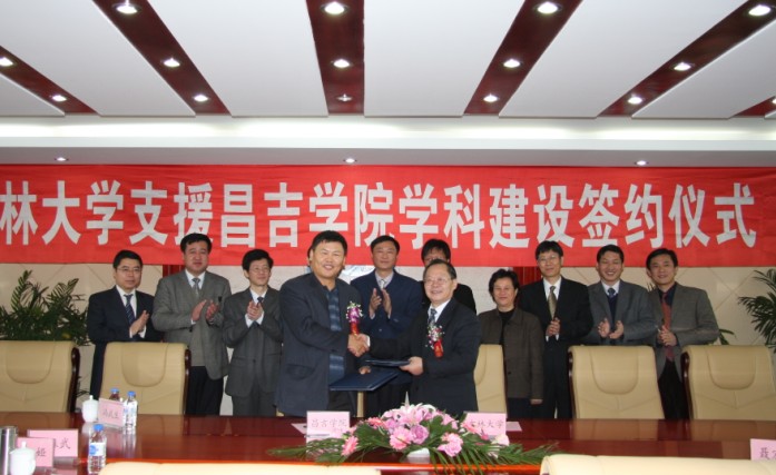 昌吉学院人事处处长王多明及吉大相关部门负责同志参加了签约仪式。仪式结束后,双方还就学科建设支援细节进行了商谈。(研究生院)