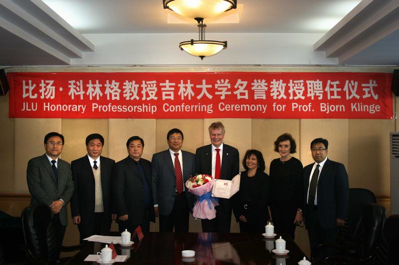 10月28日,瑞典卡罗林斯卡大学牙周病科主任比扬•科林格教授受聘为吉林大学名誉教授,吉林大学副校长陈岗代表学校为其颁发名誉教授聘书,口腔医学院和国际合作与交流处相关负责人出席了本次聘任仪式。