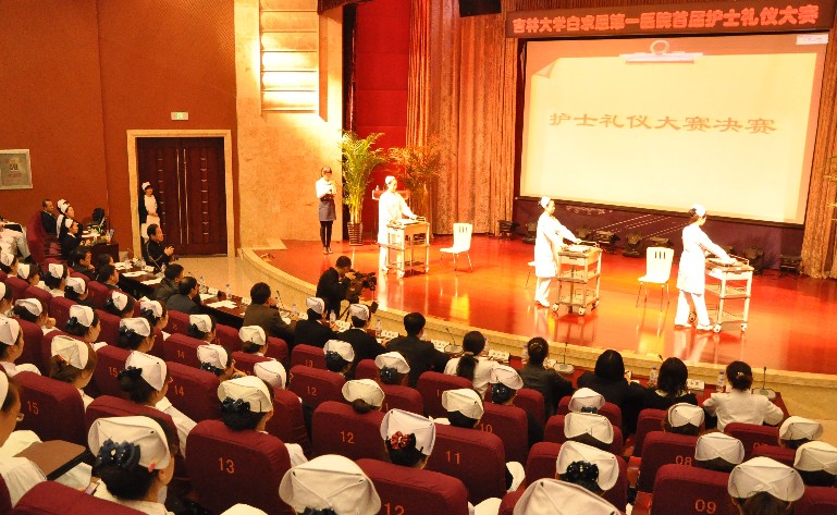 白求恩第一医院十分重视护士礼仪培训工作,在平时的工作中严格要求并规范护士职业的护理行为,提高护理服务的水平,在护理队伍中树立良好的明礼诚信、优雅端庄、体恤同情、言语亲切的护士形象。本次礼仪大赛于2010年初在全院进行了广泛动员,经过培训、预赛、决赛层层选拔,共有350名护士参加了比赛。(白求恩第一医院)