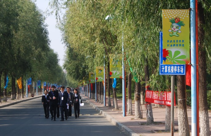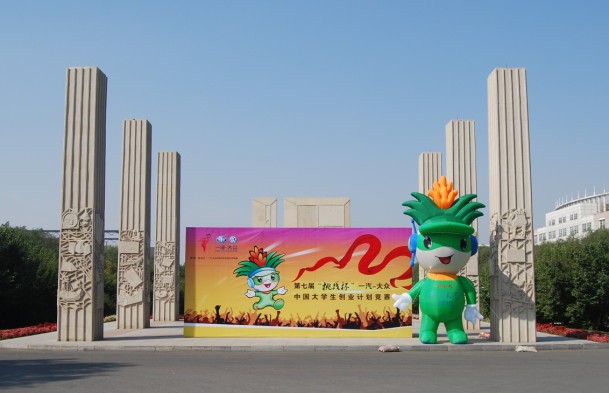 9月25日一早,记者在吉林大学中心校区的正门(东门)、北门、体育馆北门、行政楼前、新食堂门前等五个地点,不同版本和材质的“吉祥娃”绽放着朝气蓬勃的笑脸等待着参赛嘉宾们的到来。身着天蓝文化衫的吉林大学“挑战杯”志愿者们纷纷就位,准备着服务每一位远道而来的客人。