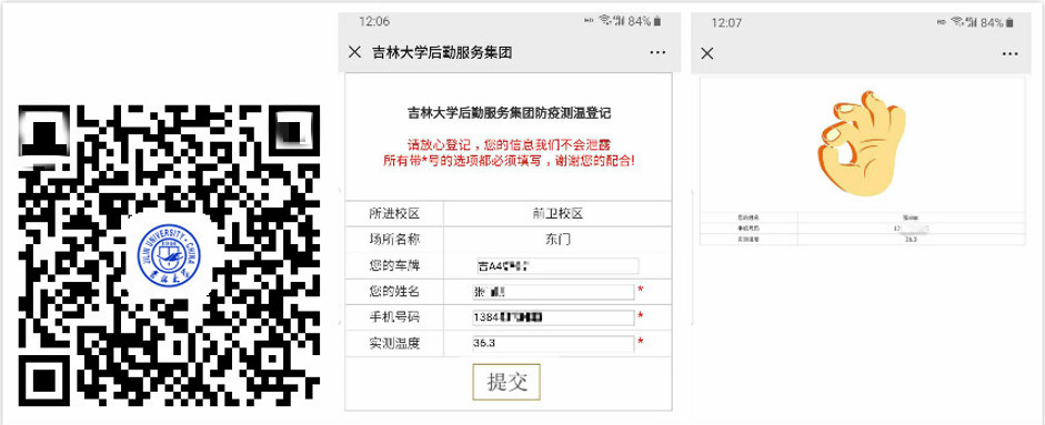 【文/后勤服务集团信息与门禁管理中心 刘芳、吉大安全微信公众号】为加强新冠肺炎疫情防控工作,减少人员接触带来的传播风险,吉林大学后勤服务集团信息与门禁管理中心和保卫处对进入校园的车辆和进出人员采用扫码登记的方式进行封校期间的登记与测温管理工作,从而精准掌握师生健康状况和校内出入楼舍信息。
