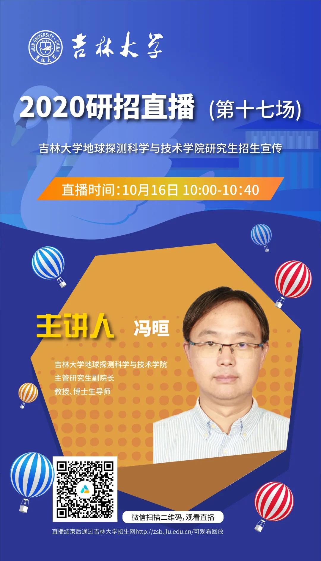 研招直播第十七场邀请到吉林大学地球探测科学与技术学院主管研究生副院长、博士生导师冯晅教授带你一同走进地球探测科学与技术学院。