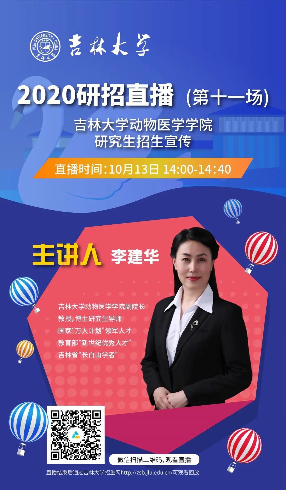 研招直播第十一场邀请到吉林大学动物医学学院副院长、博士研究生导师李建华教授带你一同走进动物医学学院。