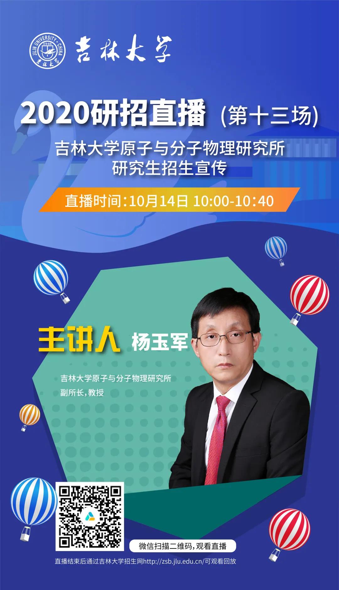 研招直播第十三场邀请到吉林大学原子与分子物理研究所副所长杨玉军教授带你一同走进原子与分子物理研究所。
