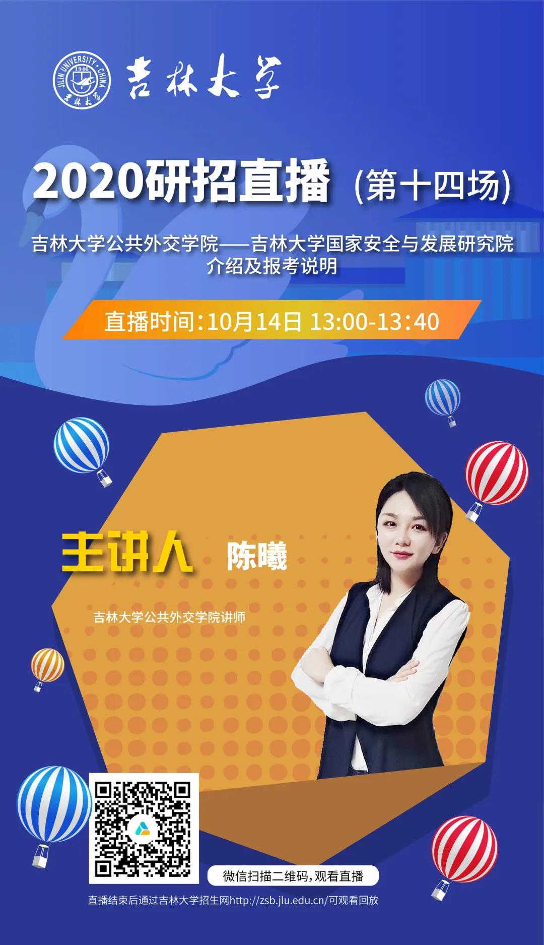 研招直播第十四场邀请到吉林大学公共外交学院讲师陈曦老师带你一同走进公共外交学院-吉林大学国家安全与发展研究院。
