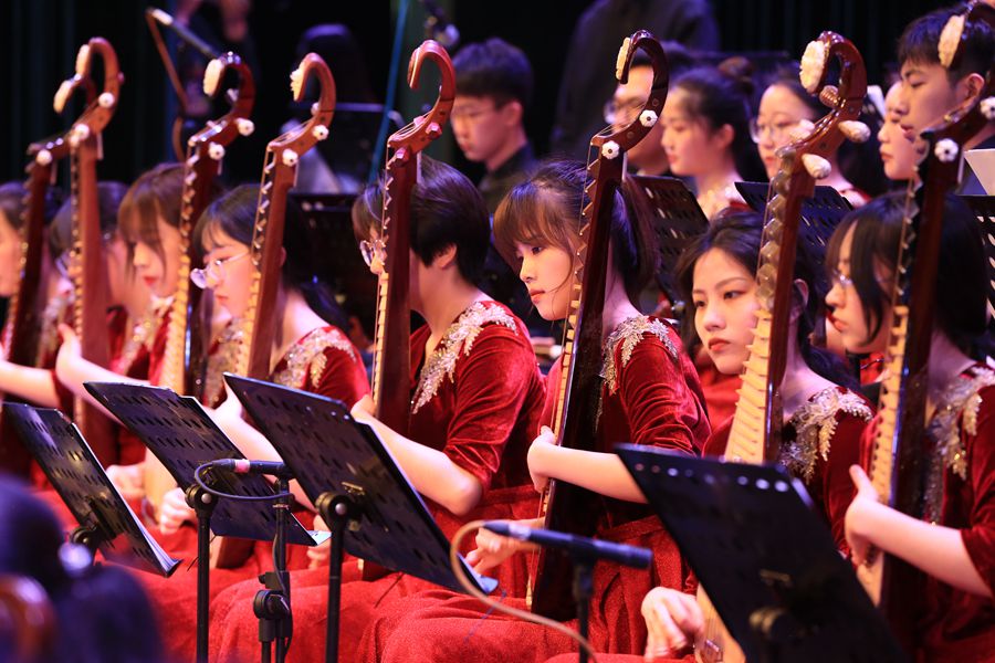 音乐会曲目丰富多样,来自大学生艺术团民乐团的演奏者用或大气磅礴、或温婉悠扬的音乐作品献礼中国共产党百年华诞,带领观众开启了一场别具特色的音乐之旅。