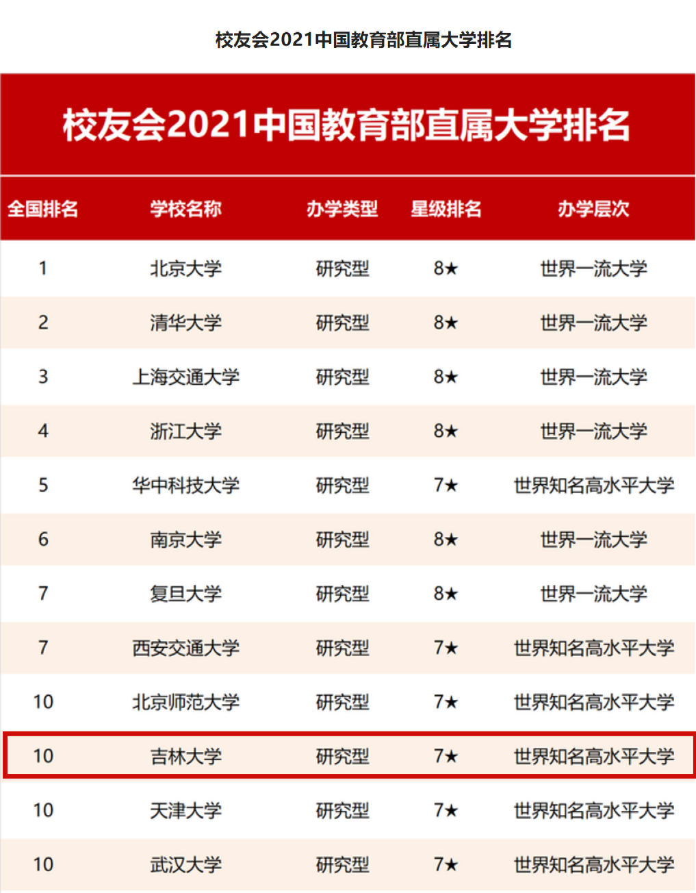【消息来源:艾瑞深校友会网】近日,艾瑞深校友会网发布2021中国教育部直属大学排名,吉林大学排名第十。