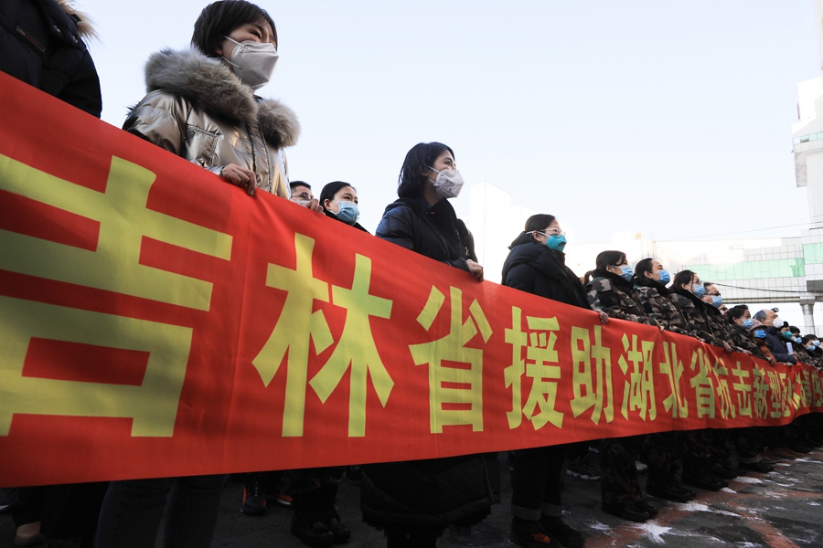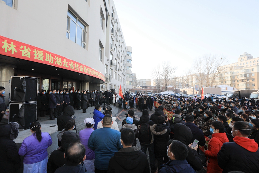 【文/曲家伟 摄/徐立华】一方有难,八方支援。1月26日,大年初二下午,吉林省援助湖北省抗击新型冠状病毒感染肺炎医疗队出征仪式在吉林大学白求恩第二医院举行。吉林省委副书记、省长景俊海,省政府秘书长王志厚,吉林大学校长张希、副校长赵国庆,省委宣传部、工信厅、卫健委及吉林大学白求恩第一医院、白求恩第二医院、中日联谊医院,吉林省人民医院、一汽总医院、延边大学附属医院、北华大学附属医院、吉林医学院附属医院、长春市中心医院、吉林市中心医院、吉林市人民医院、通化市中心医院等单位和部门负责同志参加了仪式,为医疗队壮行。
