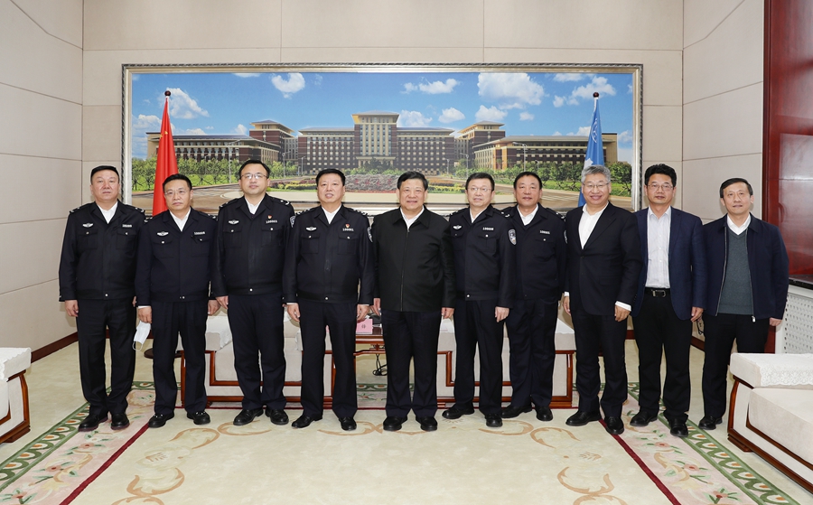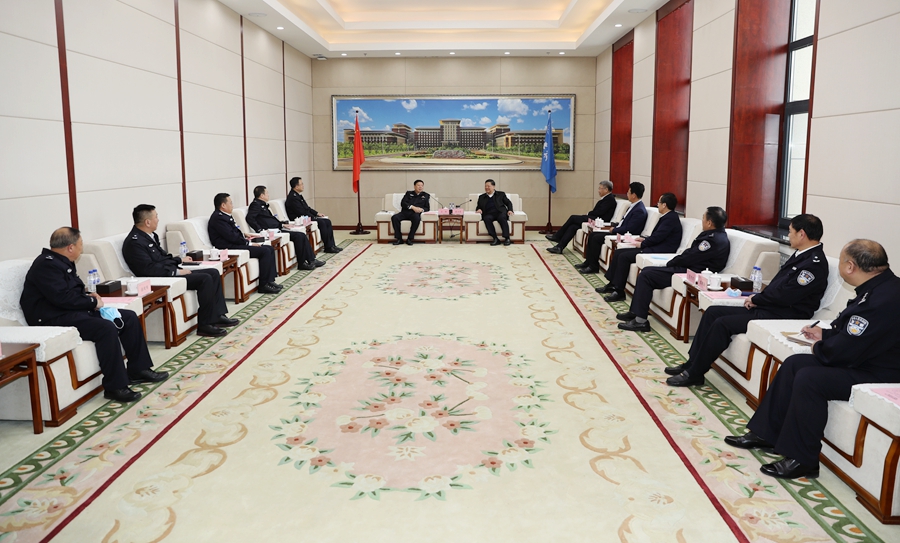 【文/摄 张宏伟】4月22日下午,吉林省公安厅副厅长、长春市副市长、公安局局长吕锋,市公安局副局长张玉龙、杜煜带领市公安局相关部门负责人和交警支队、内保支队及朝阳区公安分局、长春新区公安分局负责同志到吉林大学调研疫情防控和安全稳定工作。吉林大学党委书记姜治莹,党委副书记冯正玉,副校长王玉柱、边铁,党委办公室、保卫处、信访工作办公室等相关部门负责人参加调研。