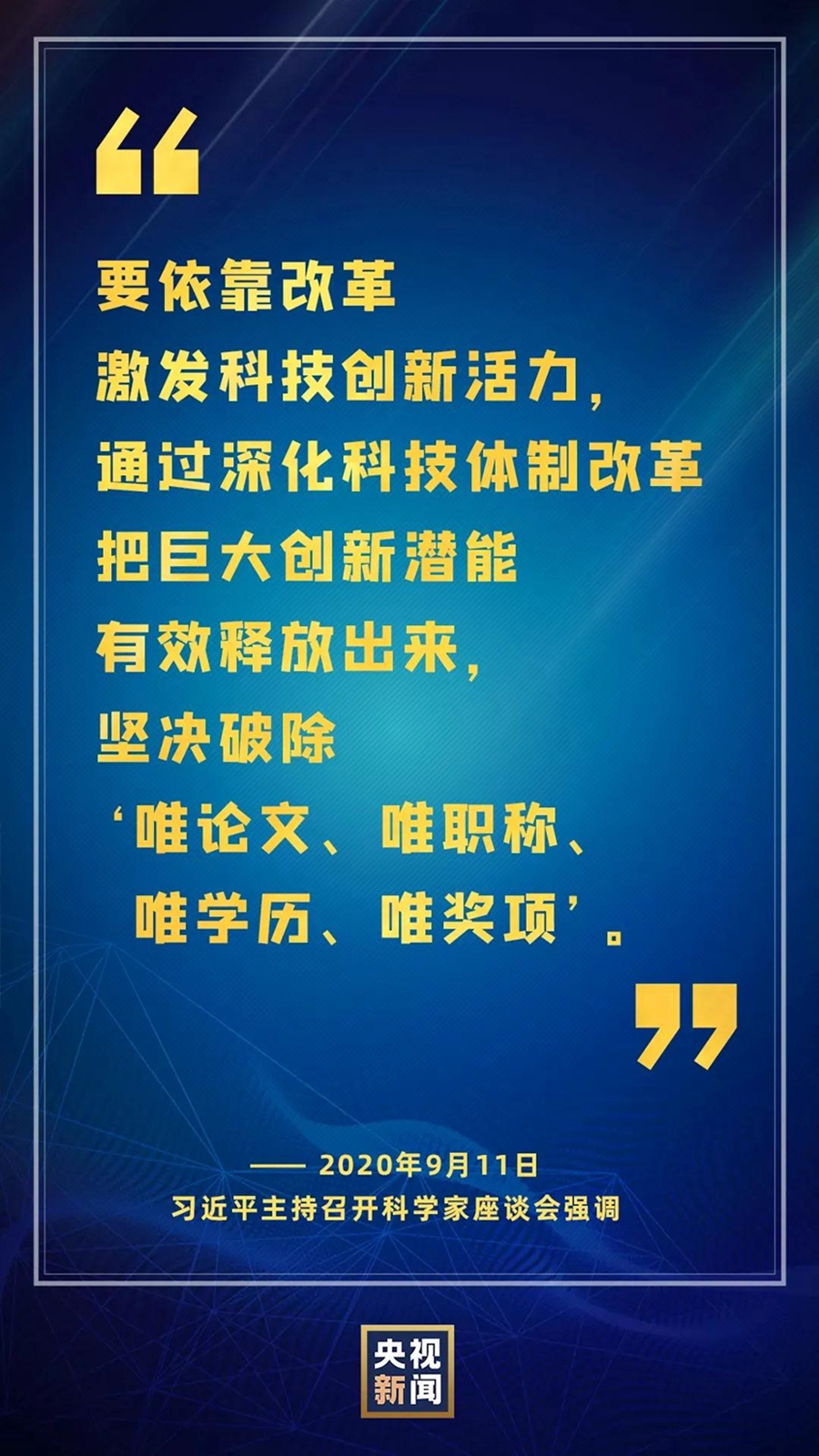 国家科技创新力的根本源泉在于人。加快科技创新,必须依靠改革激发活力,加强创新人才教育培养。我国科技队伍蕴藏着巨大创新潜能,关键是要通过深化科技体制改革把这种潜能有效释放出来。要加快转变政府职能,把更多精力转到定战略、定方针、定政策和创造环境、搞好服务上来。要加快推进科研院所改革,坚决破除“唯论文、唯职称、唯学历、唯奖项”,进一步调动科研人员的积极性和创造性。要加快教育改革、加强基础学科建设,尊重人才成长规律和科研活动自身规律,高度重视青年科技人才成长,培养造就一批具有国际水平的战略科技人才、科技领军人才、创新团队。