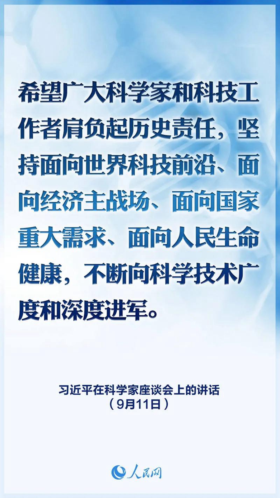 “坚持面向世界科技前沿、面向经济主战场、面向国家重大需求、面向人民生命健康,不断向科学技术广度和深度进军”。习近平总书记在科学家座谈会上的重要讲话,统筹国内国际两个大局,立足我国经济社会发展实际,科学分析制约我国科技创新发展的关键问题,指明破解之策,具有很强的战略性、针对性、指导性。 科技兴则国兴,科技强则国强。当前,我国发展面临的国内外环境发生深刻复杂变化,经济社会发展和民生改善比过去任何时候都更加需要科学技术解决方案,都更加需要增强创新这个第一动力。在激烈的国际竞争面前,在单边主义、保护主义上升的大背景下,必须加快解决制约科技创新发展的关键问题,特别是要把原始创新能力提升摆在更加突出的位置,努力实现更多“从0到1”的突破,走出一条适合我国国情的科技创新路子。