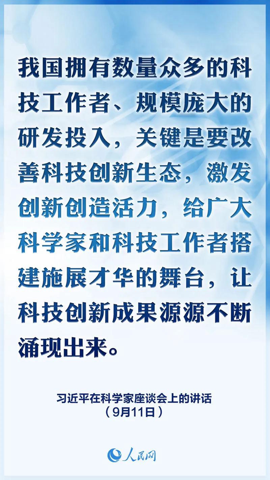 我国拥有数量众多的科技工作者、规模庞大的研发投入,初步具备了在一些领域同国际先进水平同台竞技的条件,关键是要改善科技创新生态,激发创新创造活力,给广大科学家和科技工作者搭建施展才华的舞台,让科技创新成果源源不断涌现出来。