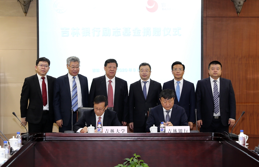 仪式上,吉林银行行长王立生与吉林大学副校长边铁共同签署捐赠协议,边铁代表学校接受捐款支票,并向王立生赠送捐赠纪念牌。