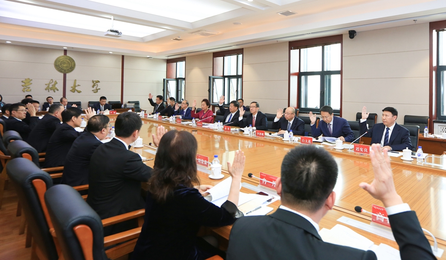 会上,吉林省民政厅厅长乔恒向学校赠书。乔恒在致辞中对吉林大学教育基金会换届会议的召开表示祝贺,希望吉林大学教育基金会作为服务高校建设的社会组织,要进一步解放思想,改革创新,践行好基金会章程,切实发挥好组织作用。换届大会上,副校长边铁作第三届理事会工作报告,校友联络和教育基金管理处处长迟宪良作第三届理事会财务工作报告。会议选举产生第四届监事会监事长;选举产生第四届理事会理事、副理事长、理事长;选举产生第四届理事会秘书长。