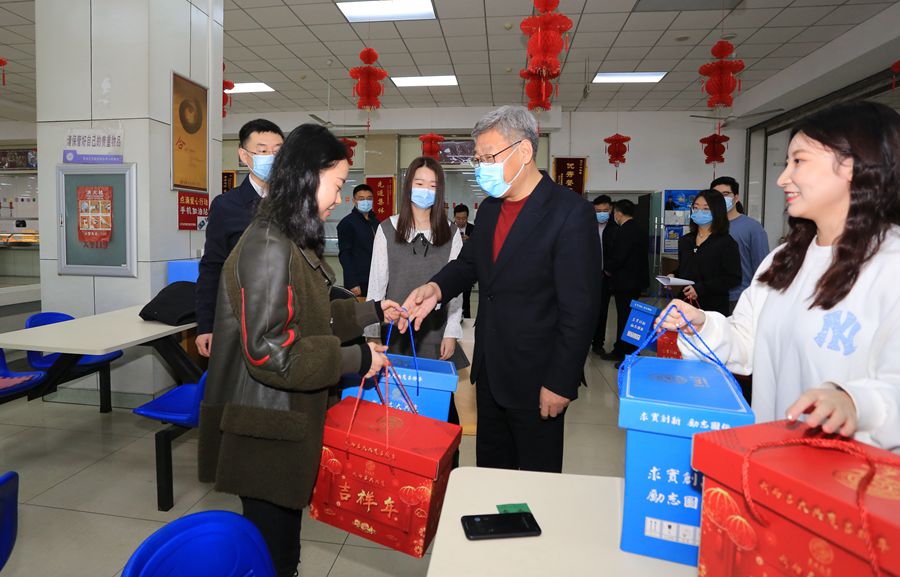 【文/摄 曲家伟】2月11日,农历大年三十,吉林大学党委常务副书记冯正玉慰问留校过年的本科生、研究生和春节期间在岗的安全保卫和后勤工作人员,代表学校向他们表达新春佳节的问候和祝福。