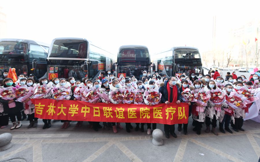 自通化局部地区新冠肺炎疫情爆发以来,1月17日,吉林大学中日联谊医院首批医疗队员驰援通化,立即参与到新冠肺炎定点医院病患救治和社区核酸筛查防控的紧张工作中。2月4日,第八批吉林大学医疗队员到达通化,至此,吉林大学三所临床医院在通化参与抗击疫情的医护人员达379名,核心专家和医疗骨干全部参与过2020年武汉、吉林当地危重症病房及吉林舒兰的新冠肺炎救治工作。在过去的一个多月中,在吉林大学党委的领导下,医疗队组建成立了吉林大学援通化医疗总队临时党委,医疗队员们夜以继日、分秒必争,奋战在通化疫情防控的最前线。在国家专家组的指导下,率先创立了“三主任、三护士长”制度,为患者提供了多元化的诊疗方案,通过精准施治创造了全国新冠肺炎患者治愈出院的最快纪录,让一个又一个患者转危为安。截至2月25日,医疗队所在参与救治定点医院累计收治感染患者总计320人,已康复出院299人。